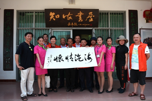 “知海書屋”創(chuàng)辦者孫衍吾還現(xiàn)場(chǎng)揮豪“海汽情懷”四個(gè)大字贈(zèng)予??诜止?。