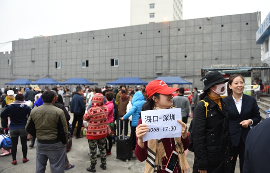 由于海口三大港口連續(xù)間斷性停航,從2月19日起每天有上萬(wàn)名旅客乘坐客車出島,造成省際班線運(yùn)力短缺。為及時(shí)疏運(yùn)旅客,海汽集團(tuán)從各分公司緊急調(diào)派350輛海汽快車和30輛旅游大巴支援省際運(yùn)輸,同時(shí)從旅游客運(yùn)分公司調(diào)派250輛旅游車補(bǔ)充市際班線運(yùn)力,有力保障車輛運(yùn)輸和接駁服務(wù)工作到位。